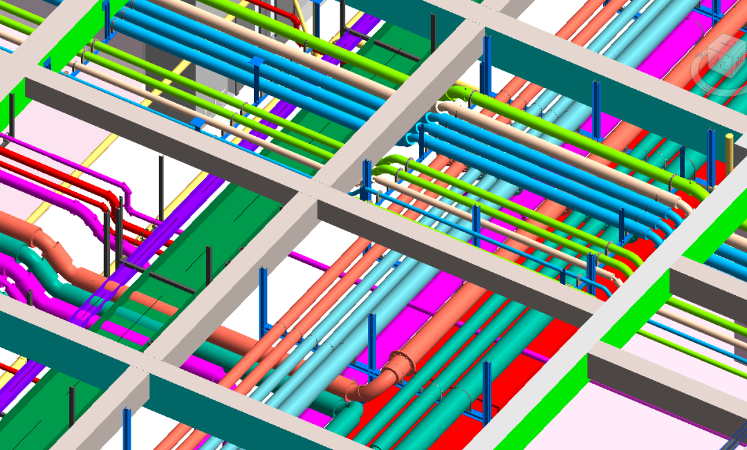 管线进行综合管线的深化,进行碰撞分析,设置联合支架进行受力分析。