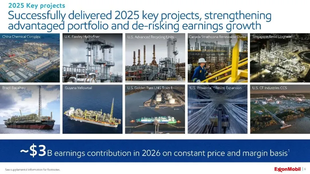 2025年是埃克森美孚的项目交付大年,成功启动了10个关键项目,涉及上游、产品解决方案和低碳解决方案等多个领域,被称作行业內规模最大、最复杂的项目启动计划。这些项目包括: