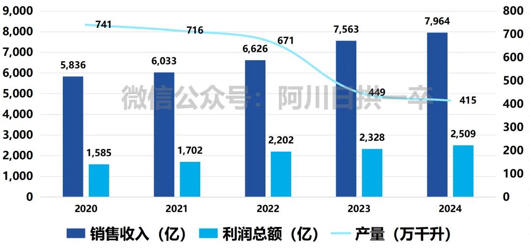 行业情况山川取的是20年-24年规模以上白酒行业运行情况(根据国家统计局的数据整理)。