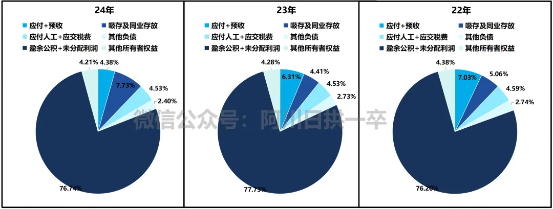 但从负债来看也是非常干净——应付人工、应交税金、同业吸存、应付预收占了绝大多数。