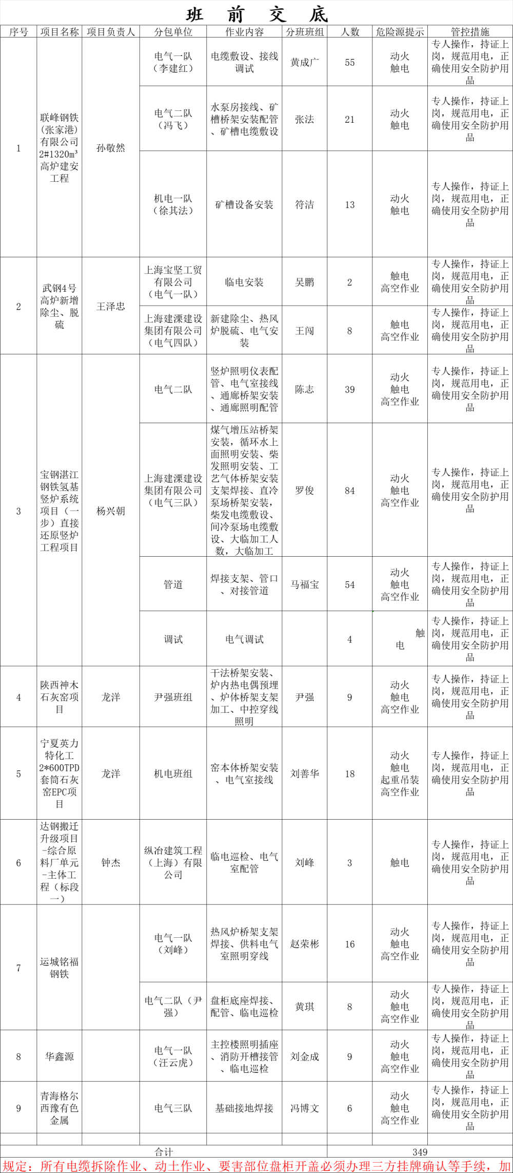 班前交底