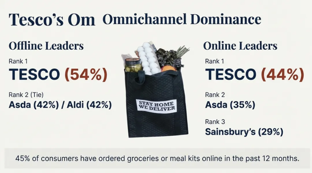 电商看亚马逊: 渗透率 78%。什么概念?几乎每个网购的人都在用。你在英国如果不做亚马逊,约等于实体店没开门。 社交看 Meta: WhatsApp 和 Facebook 的渗透率都在 70% 以上。