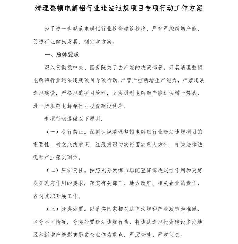 图为限制电解铝产能红线政策原件