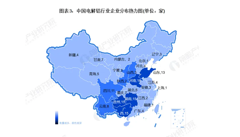 中国电解铝行业企业分布热力图(图片来自网络)