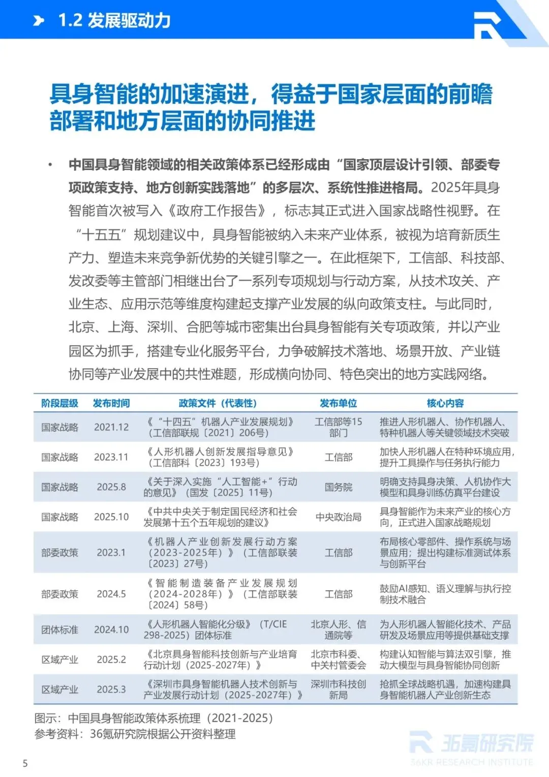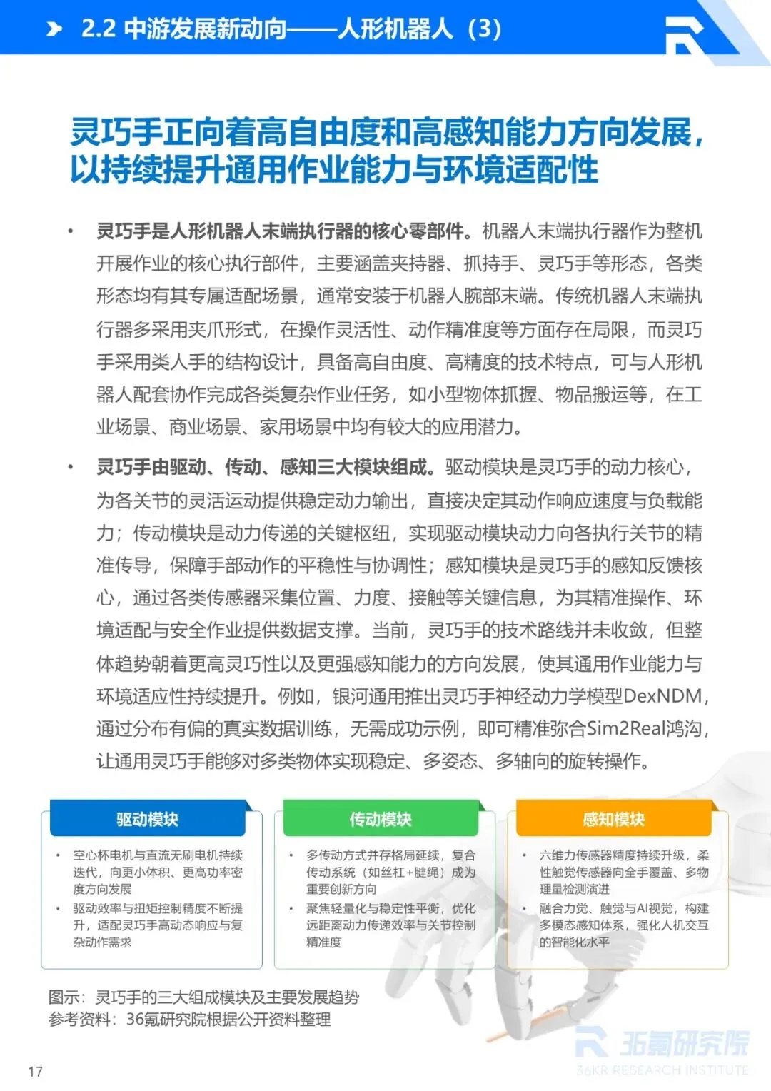 中国具身智能产业在政策、技术、需求与资本等多重驱动下进入快速发展阶段,逐步形成完整产业推进体系。人形机器人是具身智能的主要载体,正迈入规模化放量和商业落地的关键阶段。未来,具身智能将实现从技术闭环向生态协同的跨越,中国市场也将开启生态层面的综合较量。