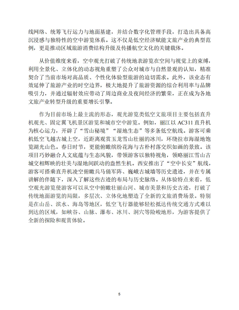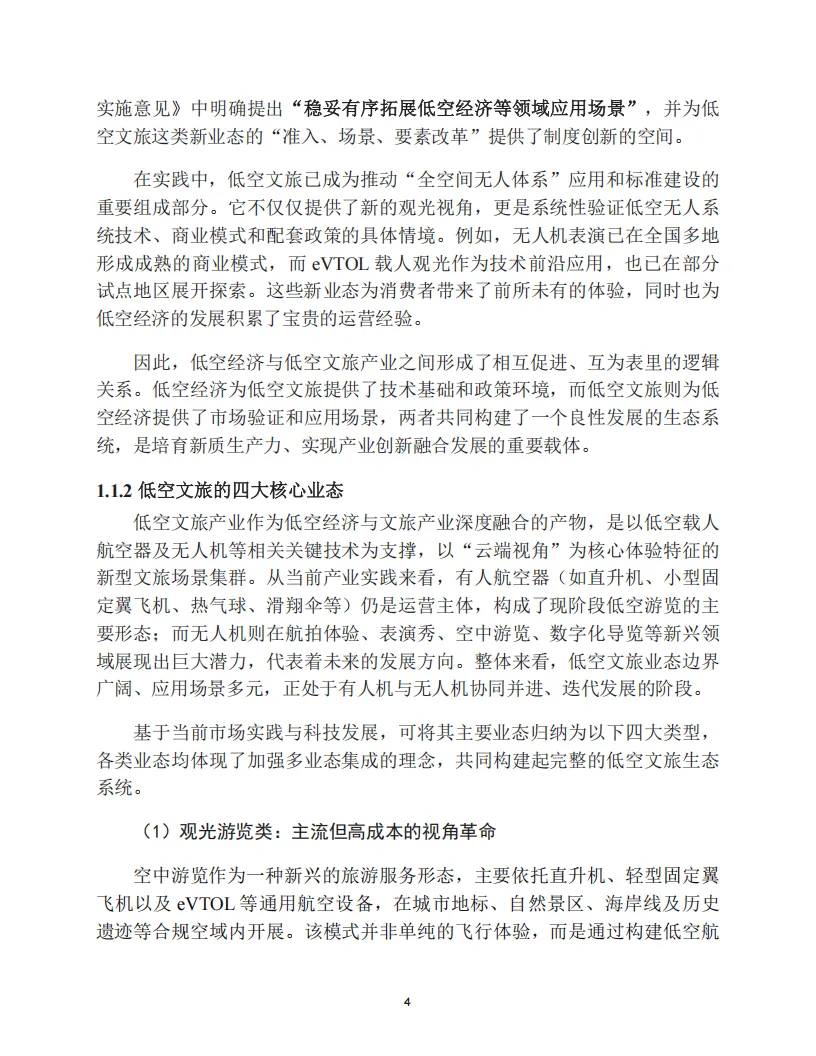 中国低空文旅产业作为低空经济与文旅产业深度融合的新兴领域,正处于从技术验证向商业化规模应用跨越的关键阶段。其核心活动空间集中在垂直高度1000米以下(可延伸至3000米)的低空空域,以“云端视角”为核心体验,已形成观光游览、运动体验、研学科普、文化创新四大核心业态,涵盖直升机观光、跳伞、无人机表演、航空研学等多元场景。