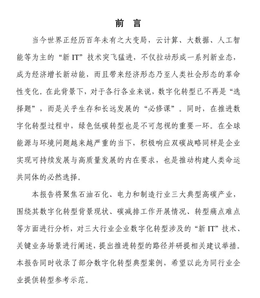 近日,中国信息通信研究院发布《企业数字化转型蓝皮报告》,聚焦石油石化、电力、制造业三大高碳产业,围绕其数字化转型背景现状、痛点难点等问题进行阐述分析。