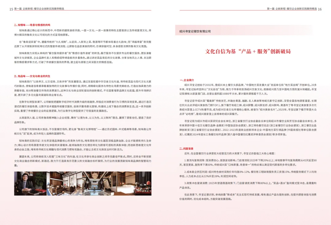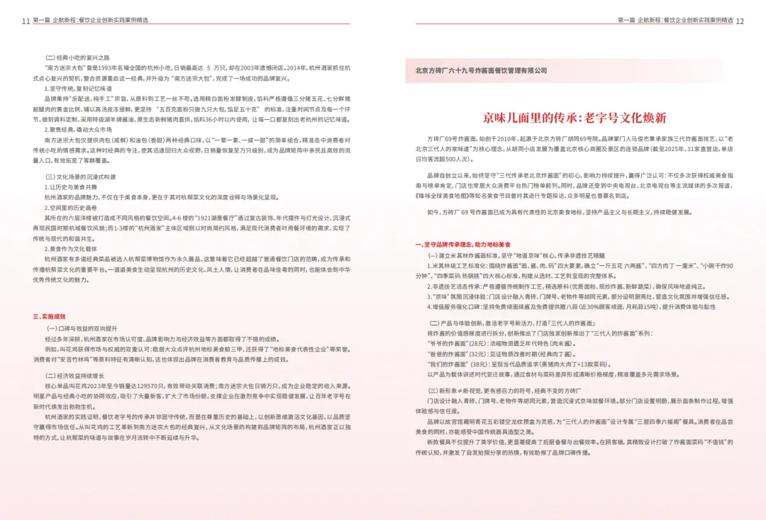 《2025餐饮业高质量发展精选案例汇编》聚焦行业创新实践与发展趋势,通过三大篇章、数十个典型案例,展现餐饮业在文化融合、产品升级、模式创新等方面的探索成果,为行业高质量发展提供了多元范本。