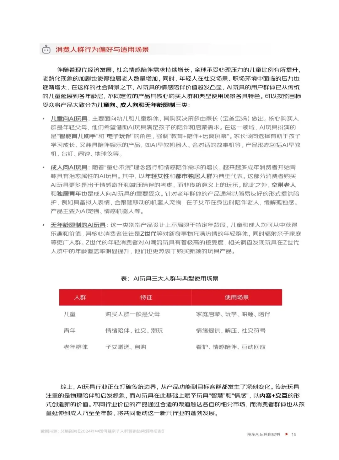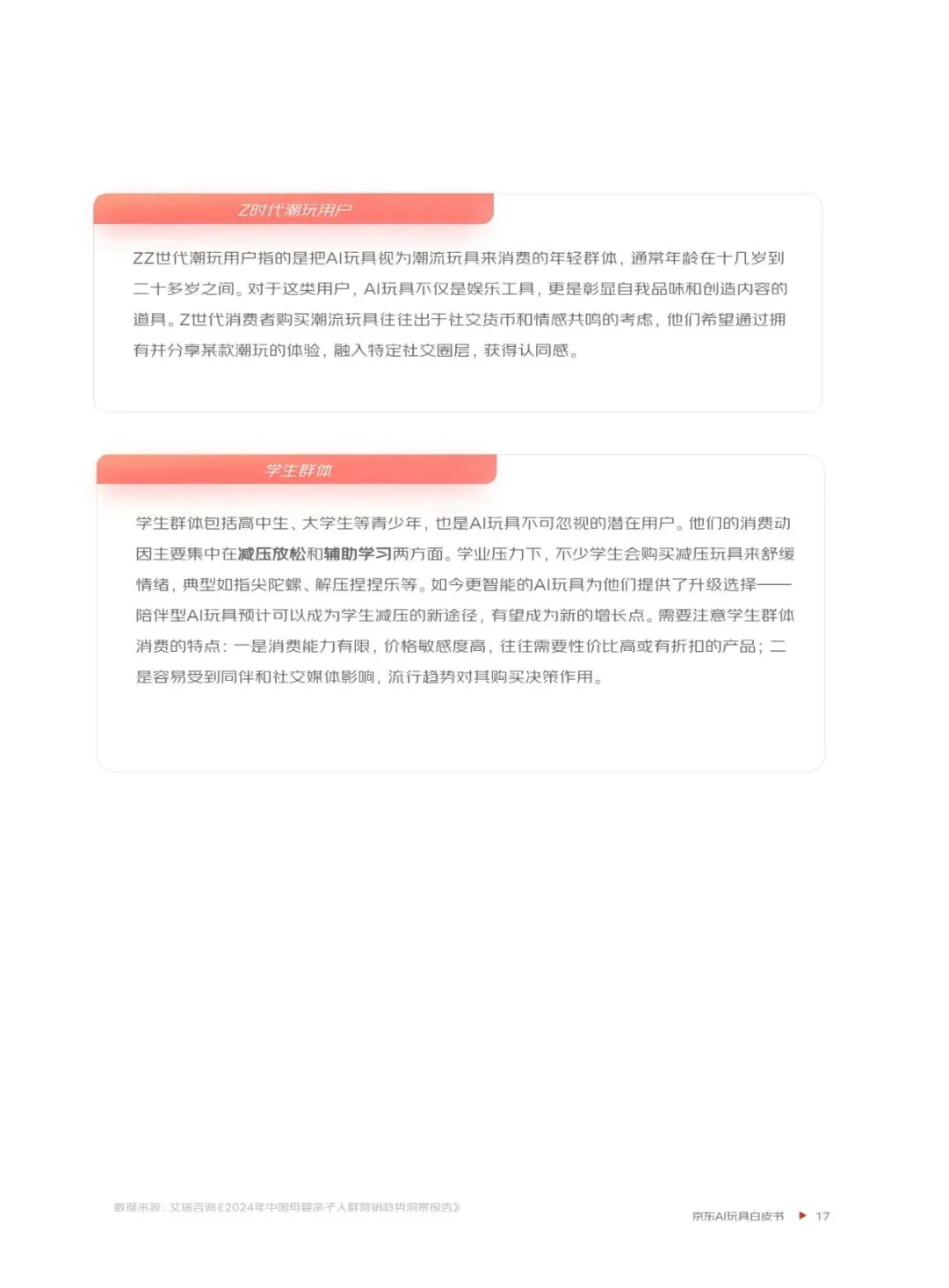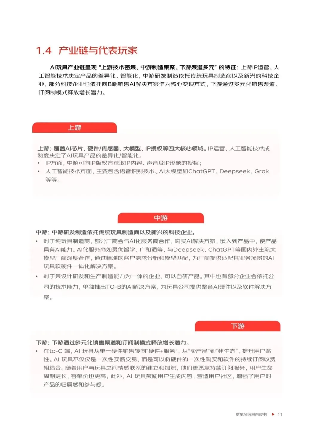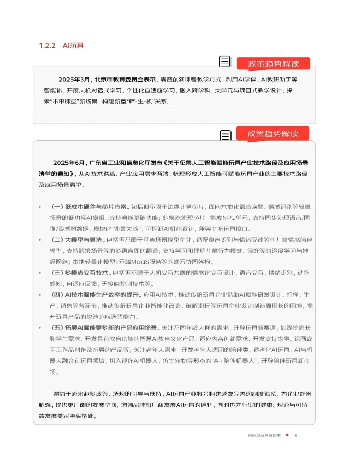 京东通过系统的研究与前瞻性的洞察,为AI玩具行业提供战略参考与发展方向建议。AI玩具的技术支持体系由软件层与硬件层深度融合构成,推动行业从功能化向认知化跃迁。未来,AI玩具将从工具型向情感连接型演进,商业化模式也将更加多元化。