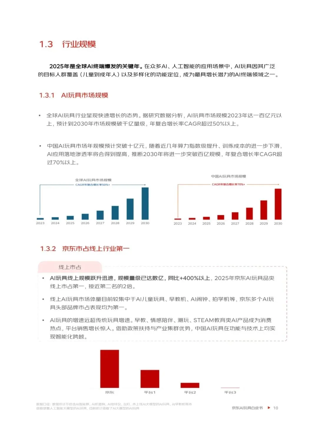 AI玩具行业正经历快速发展,全球市场规模预计到2030年将突破千亿,年复合增长率超过50%。AI玩具凭借其智能化、互动性强的特点,成为推动玩具产业高质量发展的新引擎。