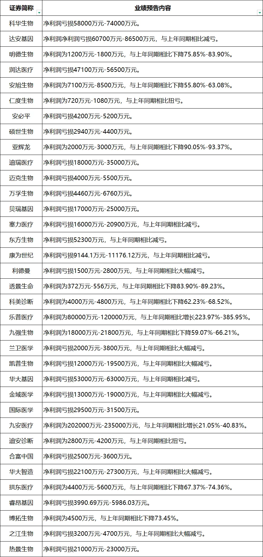 业绩改善企业(减亏 + 扭亏 + 增长):15 家,占比 42.9%,但改善多为 “减亏”(11 家,31.4%),真正实现 “扭亏为盈”(2 家)和 “利润增长”(2 家)的企业仅占 11.4%,且多为头部或细分赛道龙头(如乐普医疗、九安医疗)。