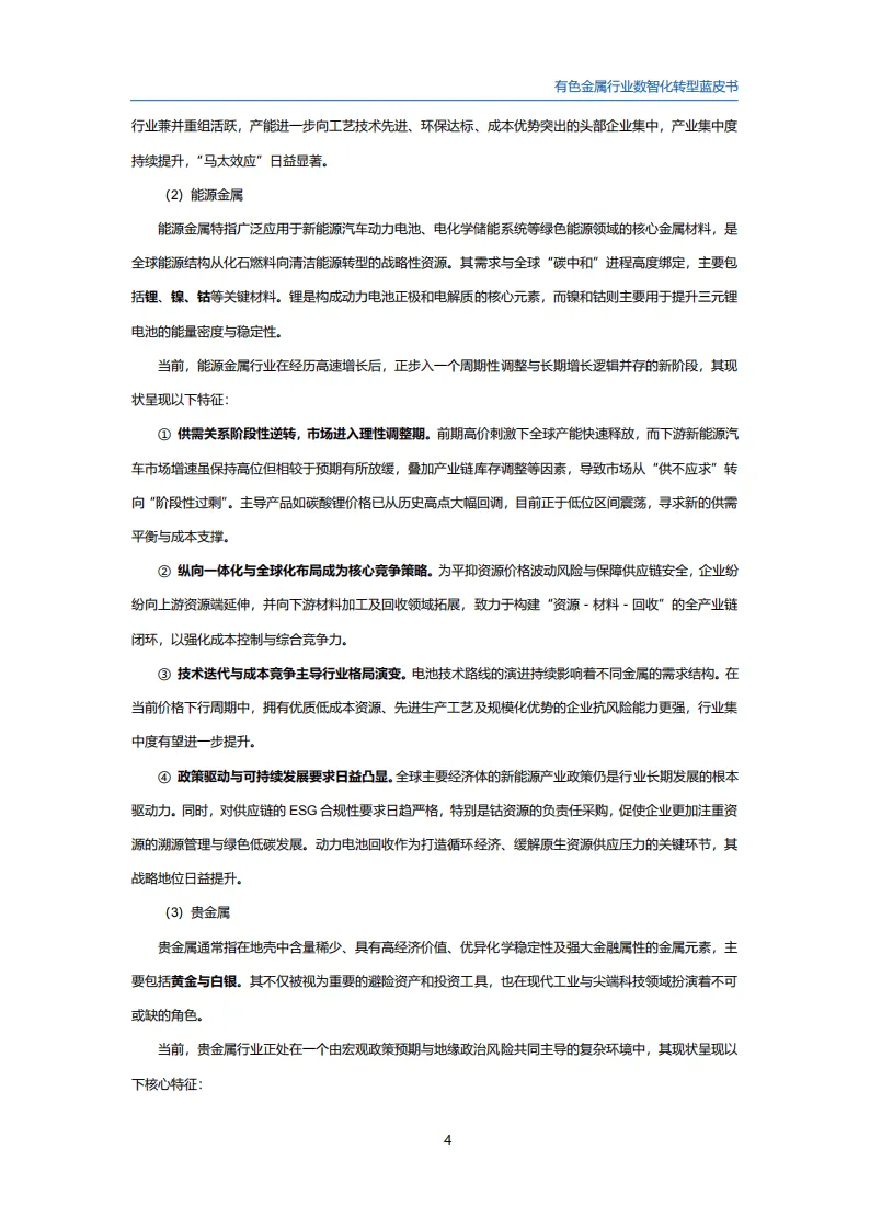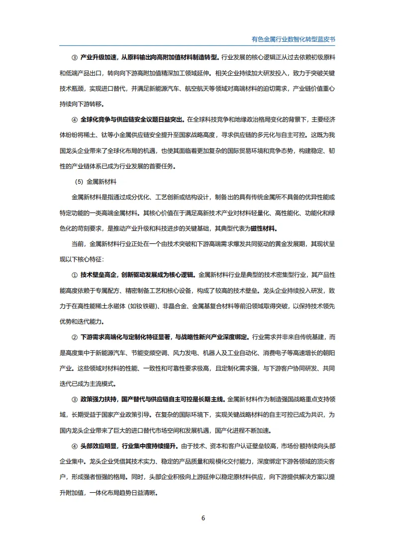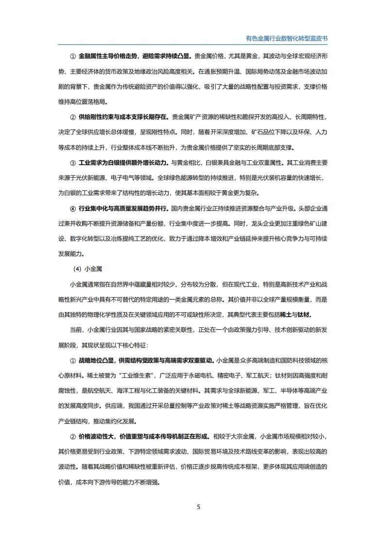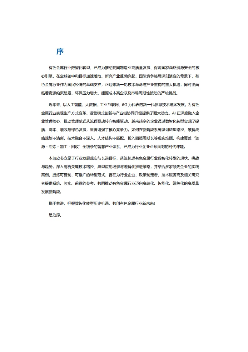 有色金属行业作为国民经济的基础支柱,其数智化转型是推动制造业高质量发展的核心引擎。在全球碳中和推进、新兴产业兴起与国际竞争格局演变的背景下,行业既面临资源约束、环保压力等挑战,也迎来了新一代信息技术赋能的发展机遇。