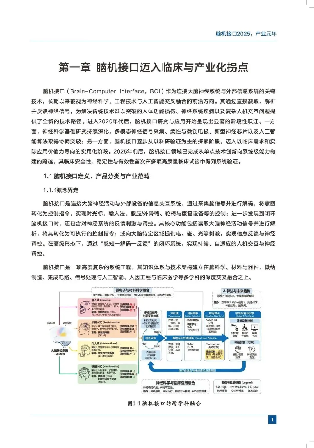 本报告对2025年前后脑机接口技术演进路径、应用扩展趋势以及产业生态集聚机制进行系统梳理,有助于更系统地把握该领域从研究前沿走向转化和产业化探索的内在逻辑,对相关政策研判与产业布局具有重要的现实意义。本报告结合当前技术和产业发展阶段,在可获得的公开资料与研究证据基础上,综合国内外科研进展与产业实践,对脑机接口的发展态势进行系统性梳理和综合分析,旨在为政府决策、产业布局、科研协同与资本配置提供可核验、可执行的参考依据,并为相关试点与机制设计提供前瞻性研判。