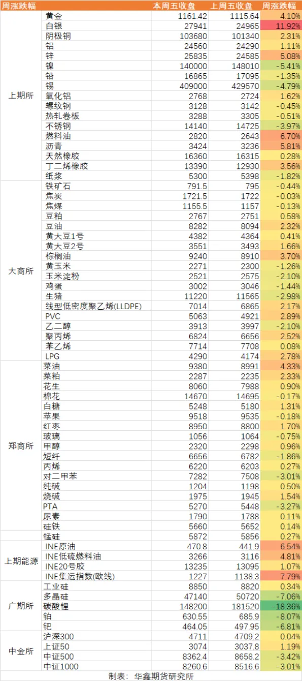 表1: 本周国内主要商品涨跌统计 数据来源 文华财经 华鑫期货研究所