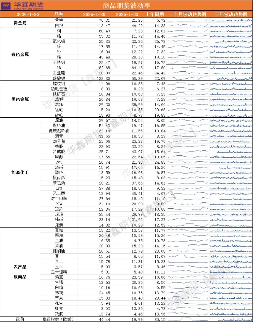 表3:本周国内主要期货品种波动率 数据来源 文华财经 华鑫期货研究所
