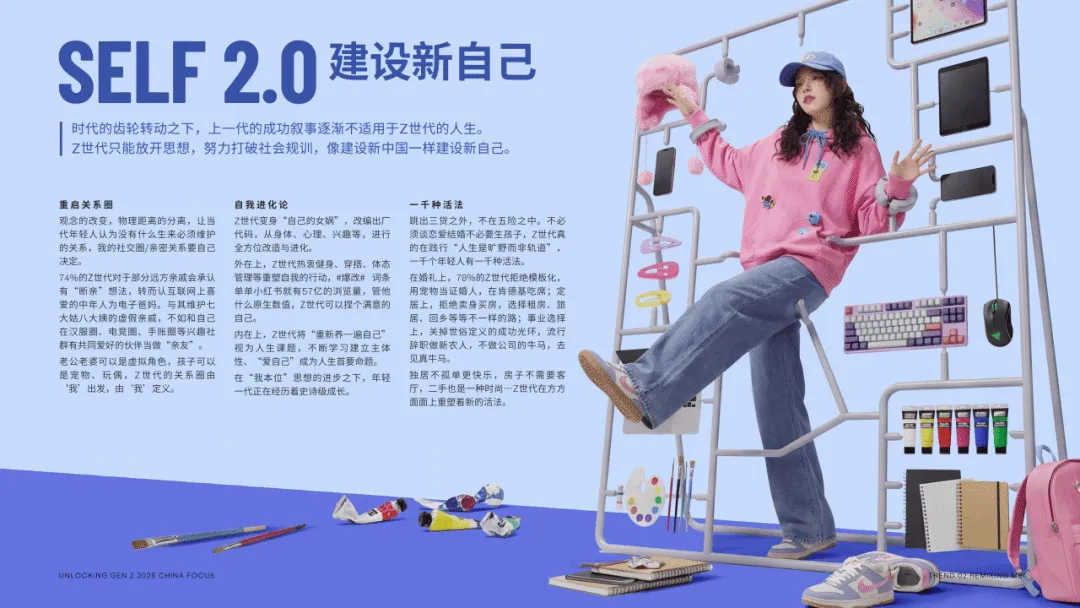《清醒的一代:Z世代主动定义的人生》报告显示,Z世代已成为掌握趋势方向盘的群体,占全球人口约四分之一,贡献近40%消费力,“清醒”是其最鲜明的精神特质。他们跳出传统人生剧本,在多元维度构建忠于自我的生活方式,核心趋势可概括为六大方向。