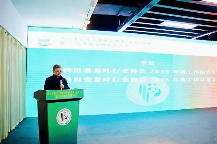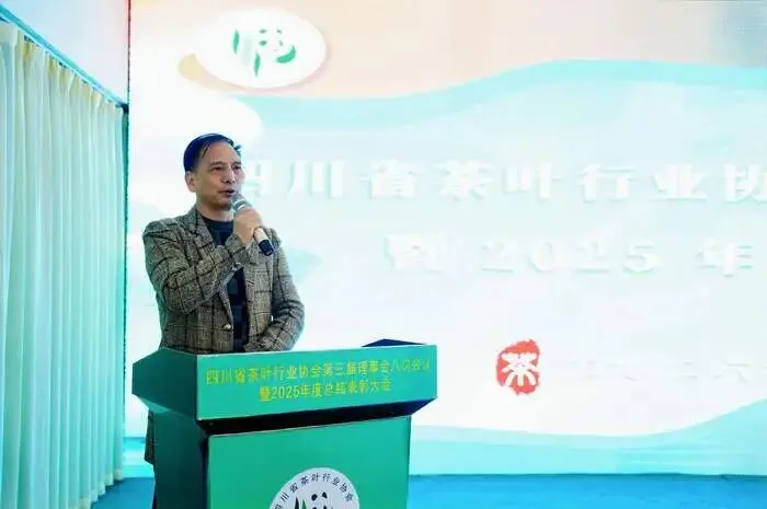 协会会长覃中显高度肯定了2025年协会工作成绩,并向所有关心支持协会工作和为川茶产业发展付出努力的各界人士表示感谢。他指出,2025年川茶产业在党建引领下,稳步推进品质提升、品牌建设与产业融合,取得了一系列亮眼成果;2026年协会将继续发挥桥梁纽带作用,聚焦茶文化、茶产业、茶科技融合发展,团结带领全行业抢抓发展机遇,补齐发展短板,持续提升川茶品牌影响力与市场竞争力,推动川茶产业高质量发展再上新台阶,为乡村振兴和四川农业强省建设贡献更多茶业力量。