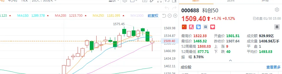国证2000、科创50同理,也是MA20就反弹了。意味着承接力还是OK的,市场对于部分板块大跌还是有一定的托底力量。