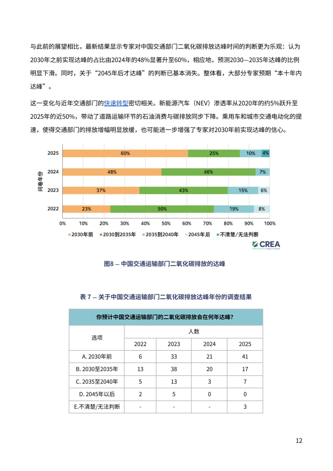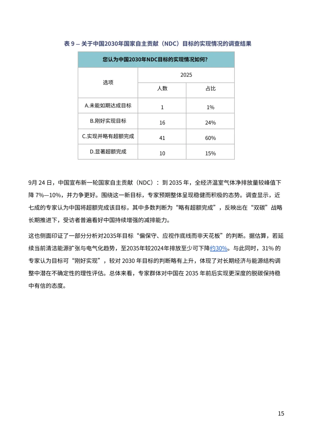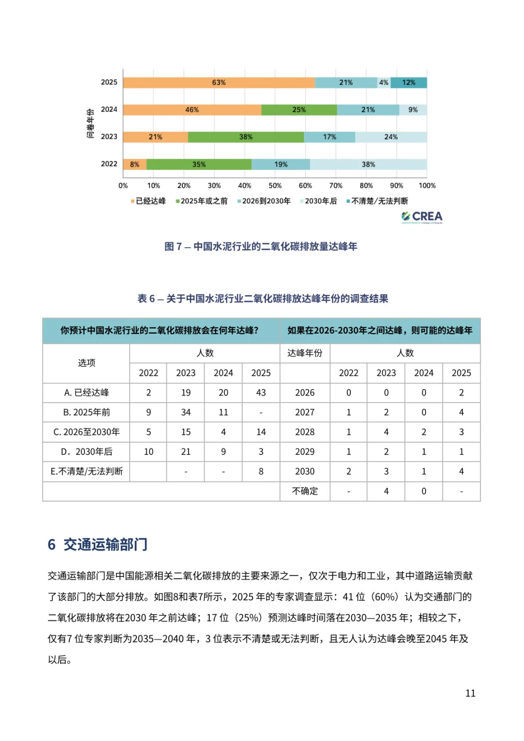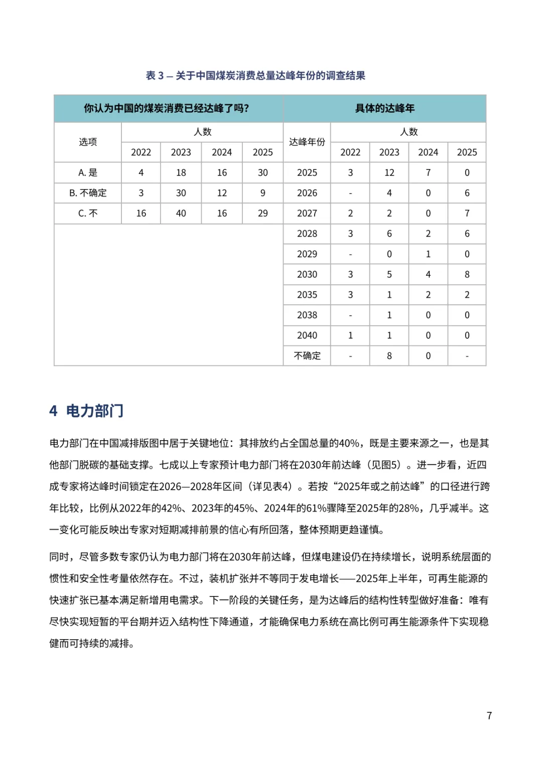 报告聚焦中国 “双碳” 进程关键趋势。超九成专家对中国 2030 年气候目标实现充满信心,近七成认为 2035 年新气候目标将显著或部分超额完成,彰显长期减排潜力。排放达峰预期呈现新变化,88% 专家看好 2030 年前达峰,多数指向 2026-2030 年区间,2028 年成为热门预判年份。钢铁、水泥行业超八成专家认为已达峰或 2030 年前达峰,交通部门 60% 专家预计 2030 年前达峰,新能源汽车高渗透率成为重要支撑。能源消费领域,近半数专家认为一次能源消费 2030 年前达峰,煤炭消费达峰与否分歧接近,44% 认为已达峰。经济与地缘环境下,56% 专家认为将加快短期能源转型,54% 认为会强化 “双碳” 目标重要性。当前 2025 年阶段性目标仍存差距,碳强度与煤炭消费增长控制需强化政策执行。