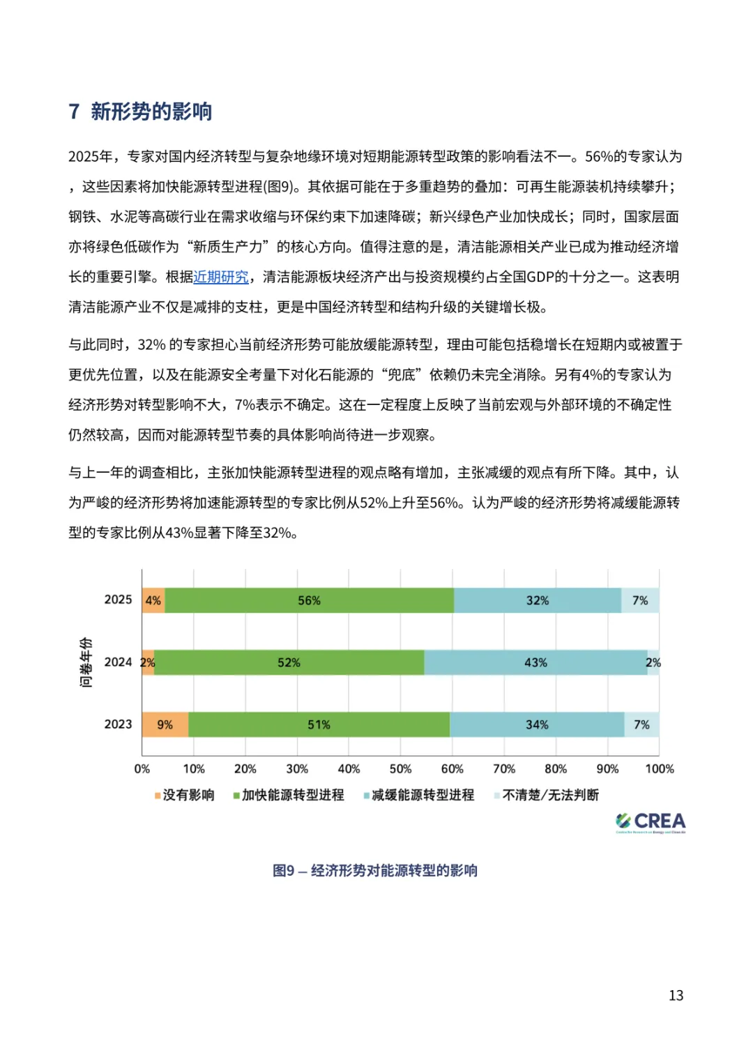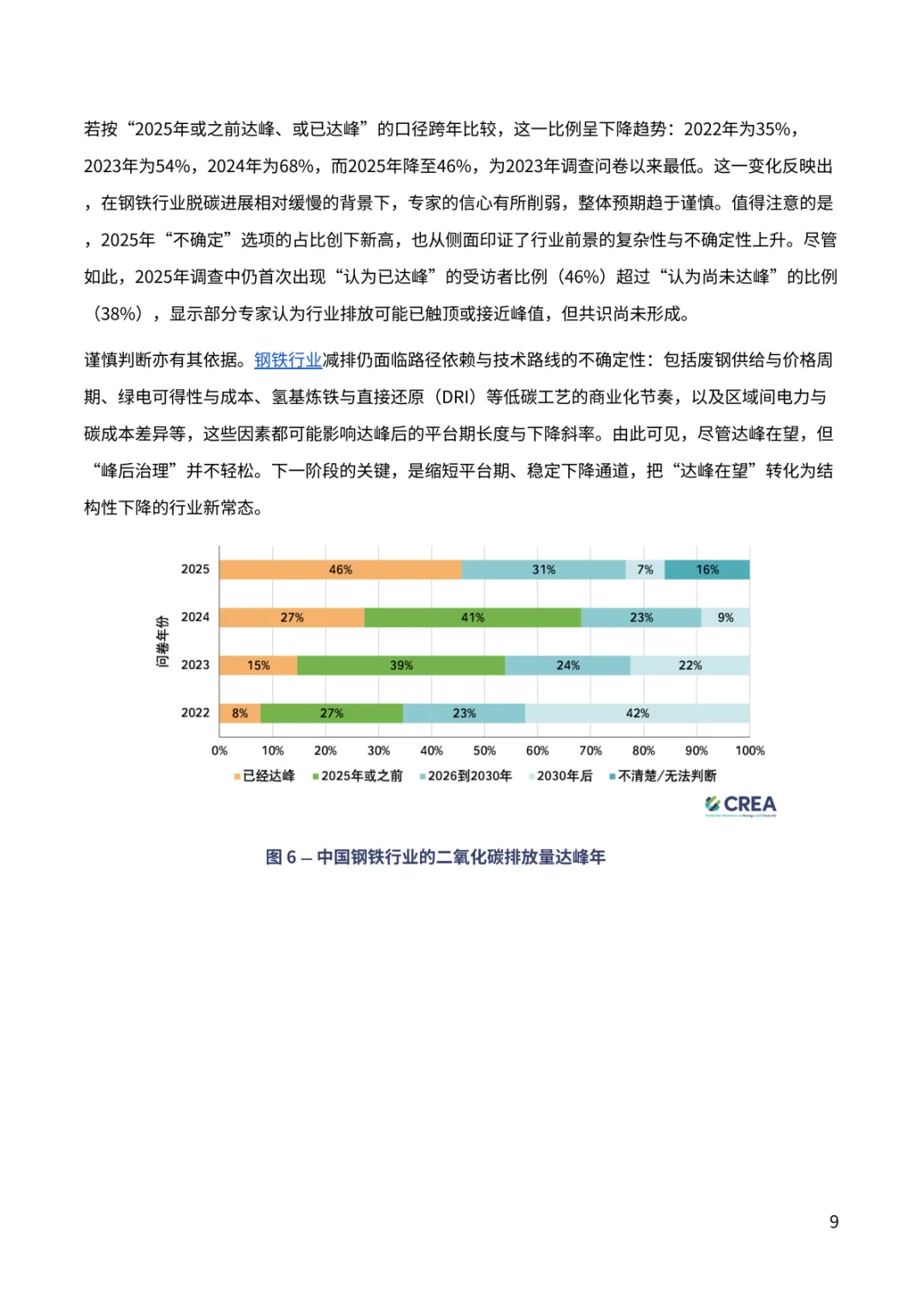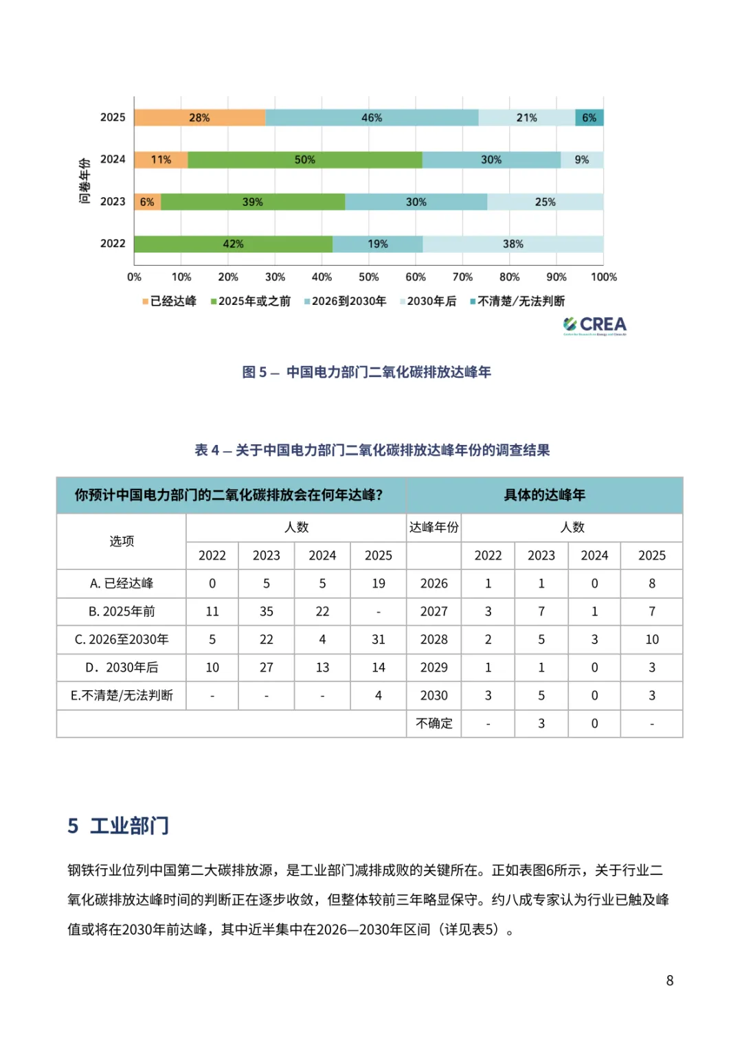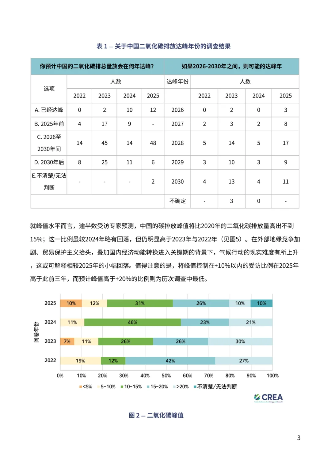 报告聚焦中国 “双碳” 进程关键趋势。超九成专家对中国 2030 年气候目标实现充满信心,近七成认为 2035 年新气候目标将显著或部分超额完成,彰显长期减排潜力。排放达峰预期呈现新变化,88% 专家看好 2030 年前达峰,多数指向 2026-2030 年区间,2028 年成为热门预判年份。钢铁、水泥行业超八成专家认为已达峰或 2030 年前达峰,交通部门 60% 专家预计 2030 年前达峰,新能源汽车高渗透率成为重要支撑。能源消费领域,近半数专家认为一次能源消费 2030 年前达峰,煤炭消费达峰与否分歧接近,44% 认为已达峰。经济与地缘环境下,56% 专家认为将加快短期能源转型,54% 认为会强化 “双碳” 目标重要性。当前 2025 年阶段性目标仍存差距,碳强度与煤炭消费增长控制需强化政策执行。