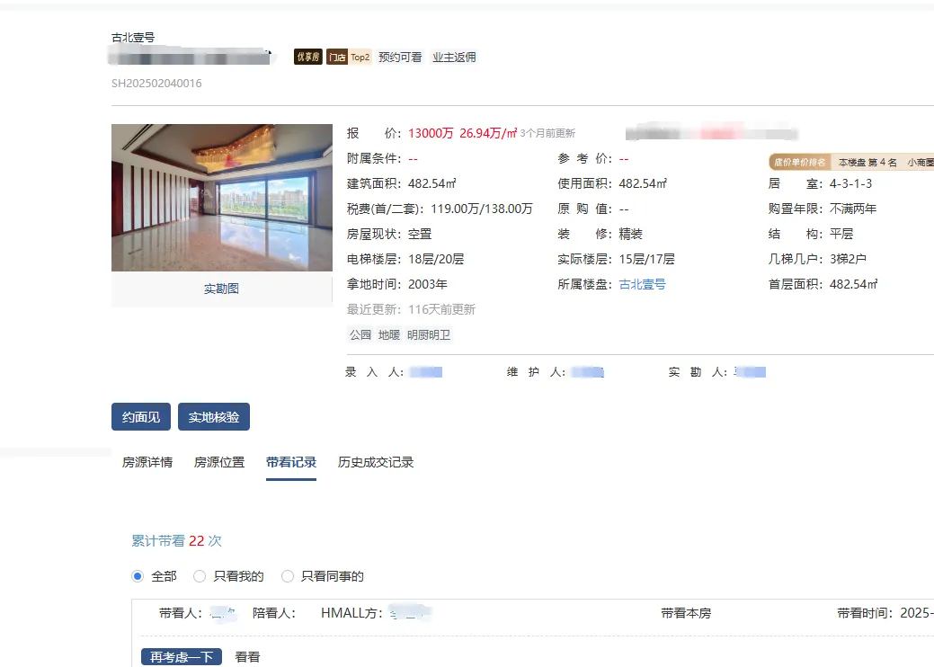 本周到访古北壹号,对3号楼高区483平户型出价9000万。
