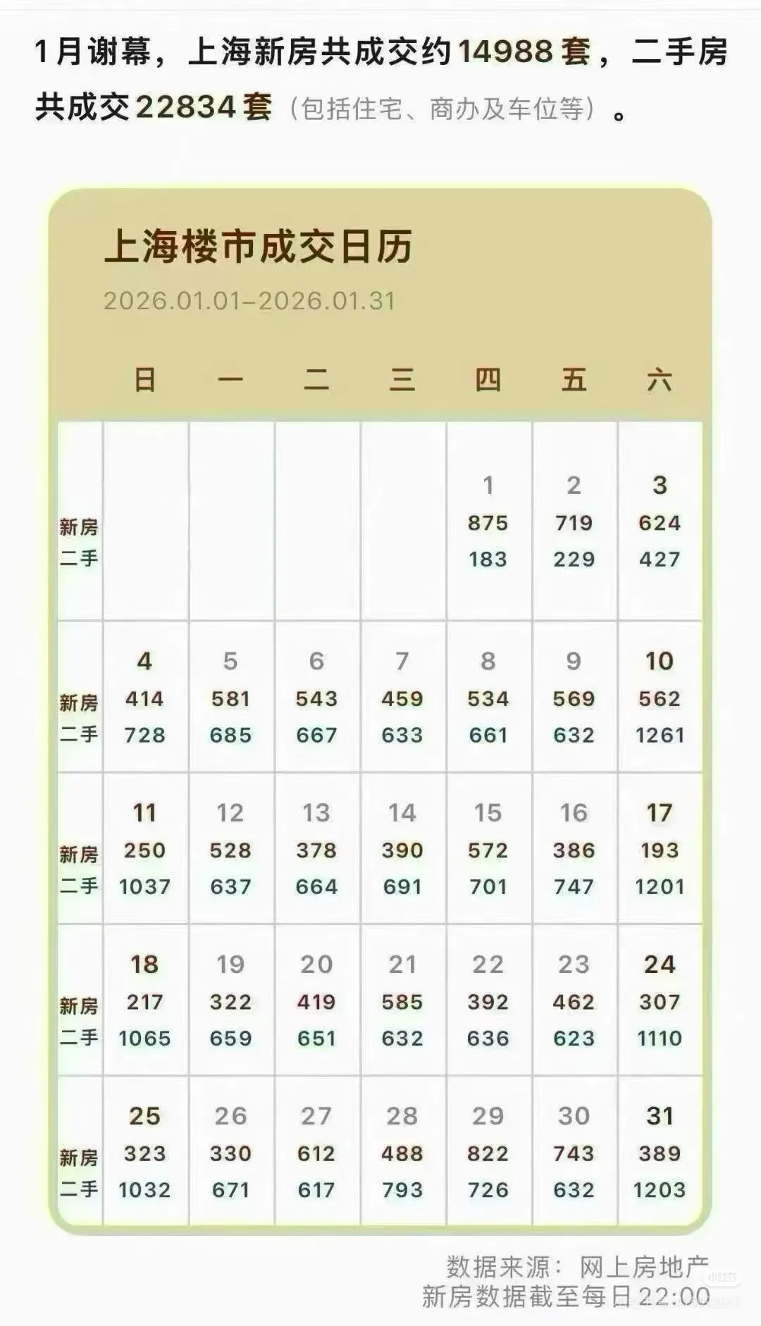 上海2026年1月成交数据