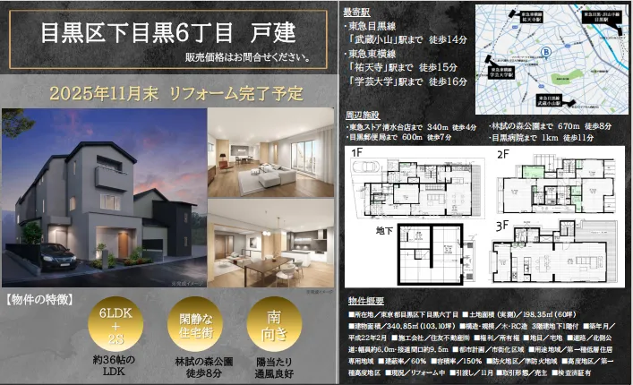 位置在下目黑6丁目,属于安静的住宅街区,开车到市区也很近,入则宁静,出则繁华,旁边有大公园,太合适自住或者配置了,未来转卖也有市场。