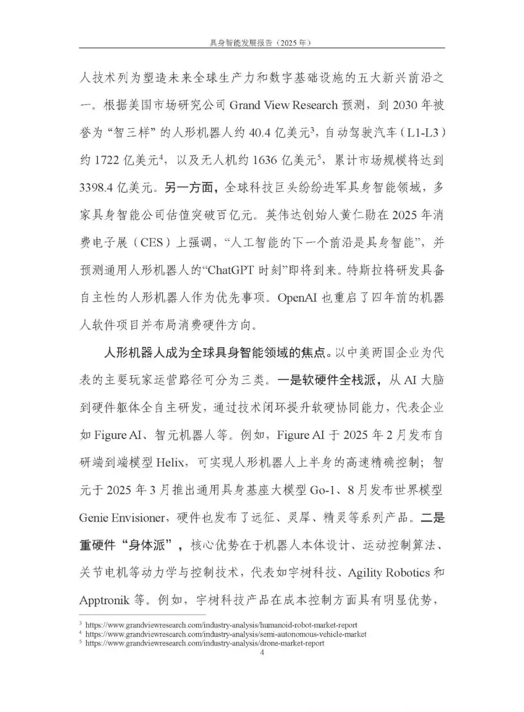 自动驾驶汽车法规完善,L3 级量产与 L4 级商业化并行推进,Robotaxi、无人配送车等场景落地提速;无人驾驶航空器(无人机、eVTOL)向飞行机器人进化,在物流、巡检、城际运输等场景广泛应用。但法律法规、场景数据、续航载荷、管理体系等方面仍有制约。