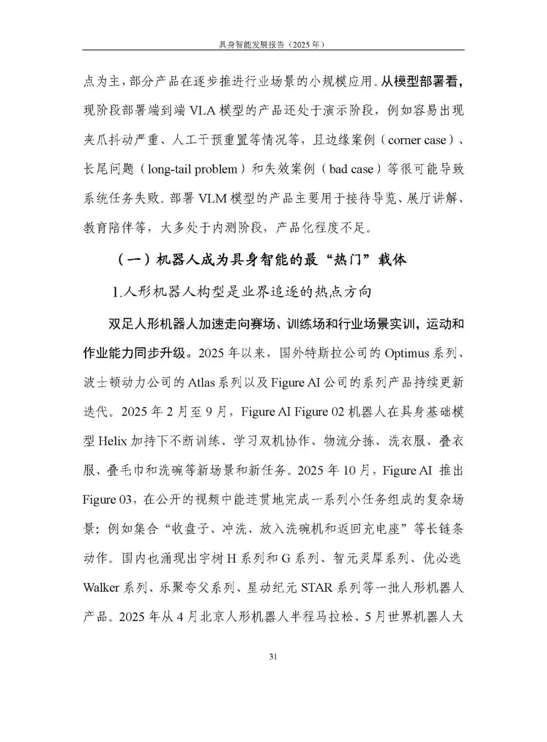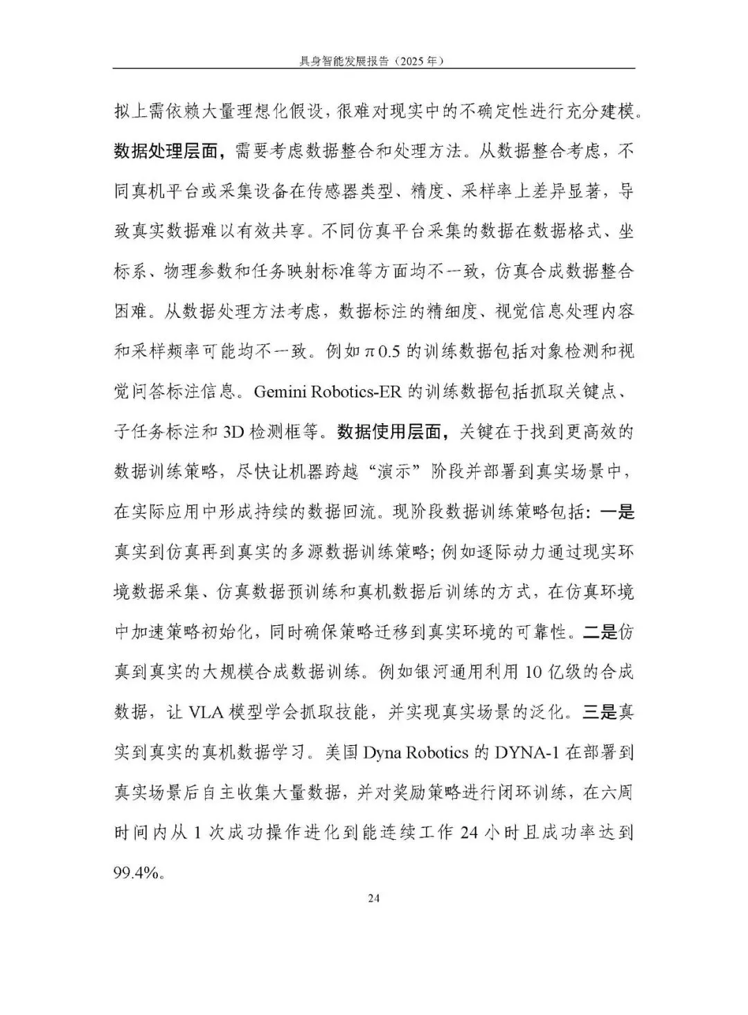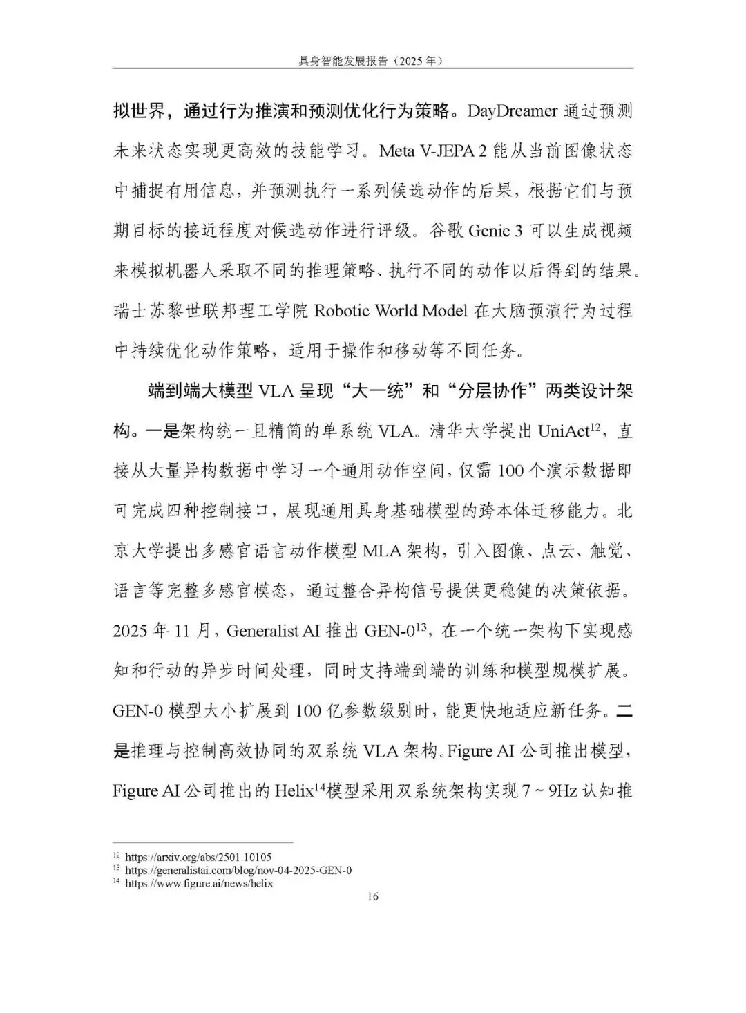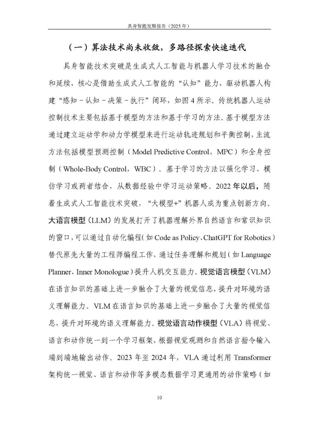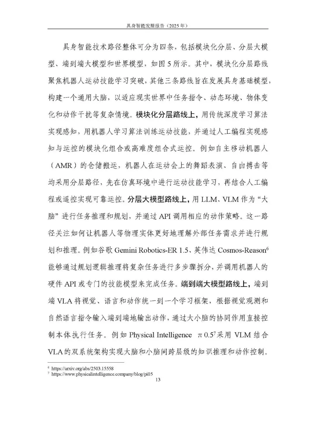 未形成统一路径,呈现模块化分层、分层大模型、端到端大模型、世界模型四条路线并行探索。2025 年聚焦 “通用大脑” 和 “技能可扩展学习”,端到端视觉语言动作模型(VLA)成为研究热点,论文数量大幅增长,但在泛化性、长程任务执行能力及软硬协同方面仍存不足。训练范式以预训练结合后训练为主,强化学习的自主探索、自我改进等方向持续突破。