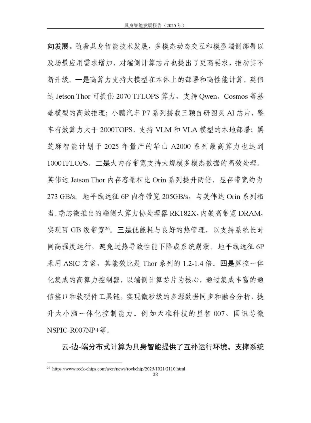 端侧计算芯片向高算力、大带宽、低能耗升级,云 - 边 - 端分布式计算提供互补运行环境,支撑智能泛化,但面临接口兼容性、端侧计算限制、通信与资源分配约束等技术挑战。