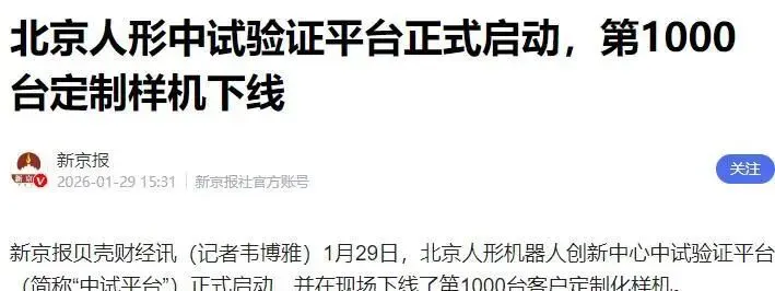 还有一个细节,1月29日,北京人形机器人创新中心的中试验证平台启动了,下线第1000台客户定制化样机,平台配500台套试制生产和测试设备,年产能5000台套,打样到小批量,链路拉通,这种节奏,危险不危险