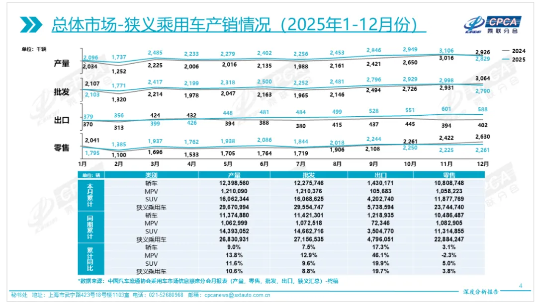 本期我们聚焦MPV市场,自2000年上汽通用引入别克GL8、开启中国MPV1.0时代以来,26年间,主流合资品牌与自主品牌纷纷布局,推出多款适配市场需求的MPV车型,推动中国汽车市场逐步形成轿车、SUV、MPV三大核心板块。过去,MPV多聚焦商务接待场景;如今,汽车消费已从“单纯载人”的工具属性,升级为适配多元场景的“移动空间”,场景化配置成为产品差异化竞争的核心抓手。据乘联会数据显示,2025年MPV车型产量再创新高,突破106万辆,同比增长13.8%,增速显著高于轿车(9.0%)与SUV(11.6%);其中,MPV出口同比增幅达46.1%,远超轿车与SUV品类,展现出强劲的市场增长势能。