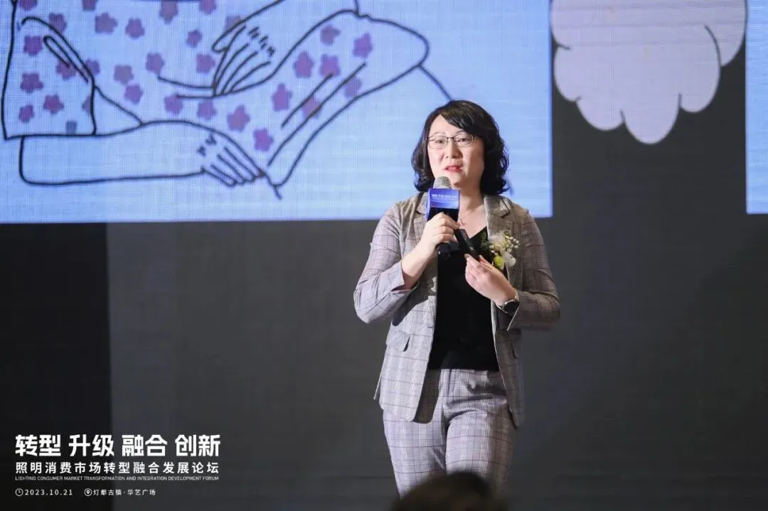 王卓秘书长还分享了题为“新时代的照明消费市场”的主题演讲。她从行业发展现状、国家的政策导向、新时代照明消费市场的特点、拥抱新时代的照明等四个方面进行分析,并指出了照明行业实现高质量照明市场建设的应对措施。她表示,新时代的照明消费市场具有新技术(智能照明、健康照明、以人为本的照明)、新产品(LED照明,多功能、个性化产品)、新群体(年轻一代消费者、老龄群体、细分领域用户)、新模式(网络营销、系统集成、定制化)等特点,未来高质量的照明消费市场建设需要优质产品和服务的双重支撑。优质产品既要满足标准质量要求,也要满足市场需求;优质服务即是全面综合的服务,又是全过程服务。这需要行业在系统的质量管理、标准研制实施、科技创新、理解用户能力、政策应用把握、跨界人才培养、向服务型制造等多个方面加强投入,不断为优质产品和优质服务积蓄行业发展新动能。中国照协将积极推进五个践行(践行科技自强、标准质量、数字经济、绿色低碳、扩大消费等五大战略),通过引导科技创新、强化标准建设、推动人才培训、促进内贸市场建设等4项举措加快建设照明行业高质量消费市场,为建设照明强国贡献力量。