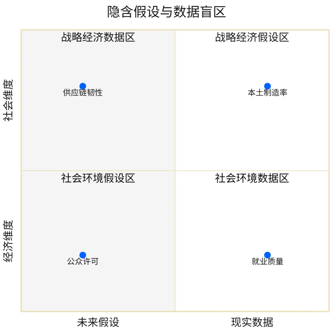 下图通过一个象限图,系统性地梳理了报告中存在的隐含假设和数据盲区,并提出了相应的关键未竟之问,为读者提供了一个批判性阅读的框架。
