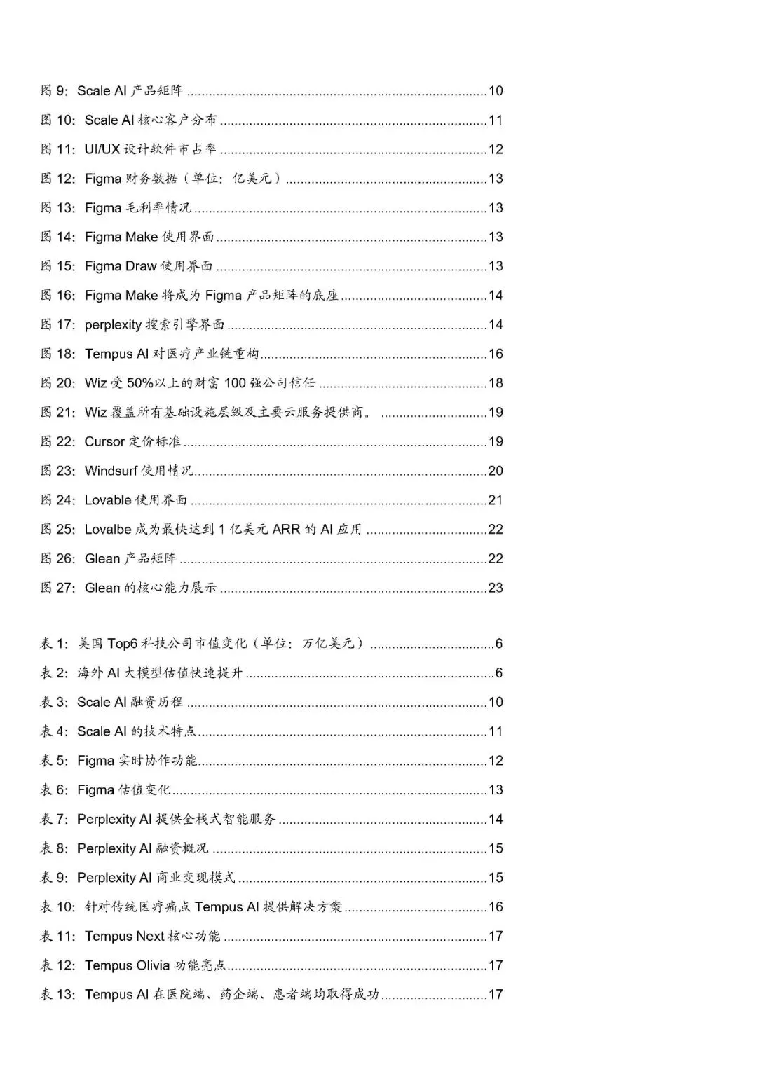 应用层:遵循"工具刚需化+场景垂直化+AI原生"三要素,编程工具(Cursor)、设计平台(Figma)、医疗AI(Tempus)已验证模式