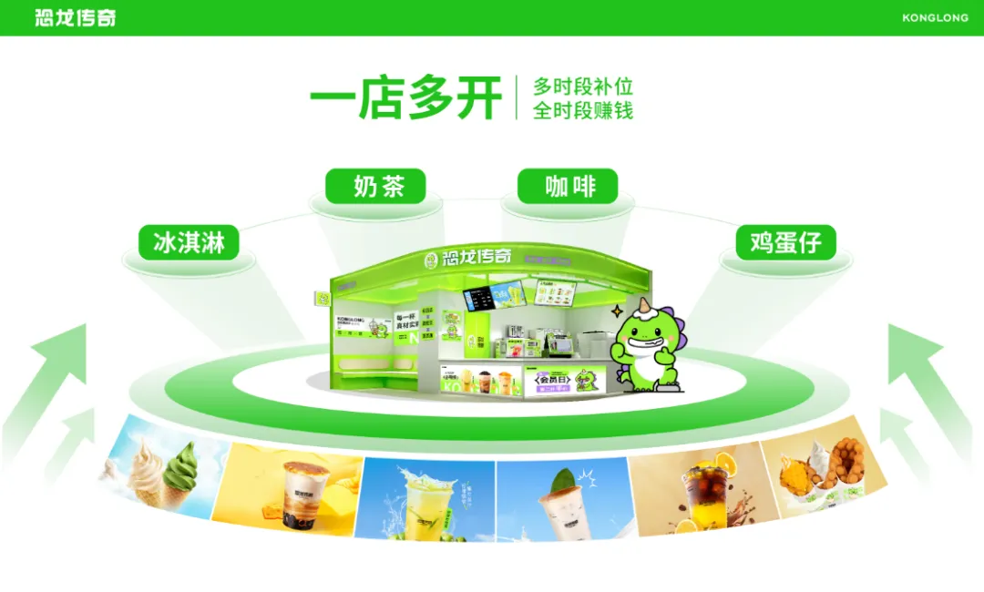 从品牌名称到品牌形象,恐龙这一独特记忆点深入人心。积累恐龙能量,解锁更多传奇。每一个IP都有专属名字和对应产品线,霸王龙系列产品还具有专属观赏和交互体验,减低运营成本的同时,也清晰的创造了一个完整的“驯龙高手”世界观。在同质化的消费场景中脱颖而出,塑造了一个懂茶饮、懂营销、更懂玩梗的潮流主理人的品牌人设。