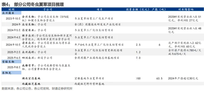 多家公司积极布局冬虫夏草项目: