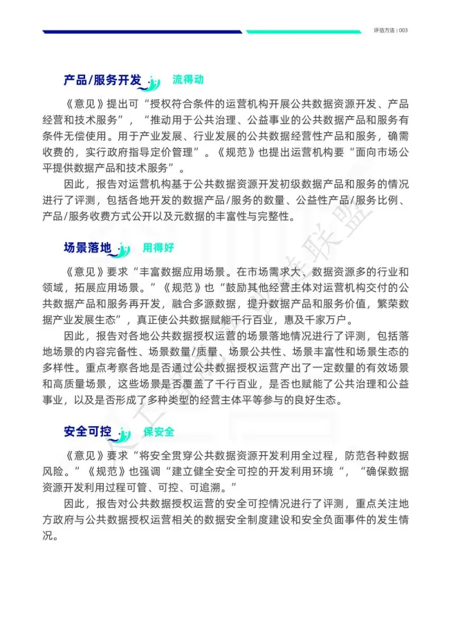 ? 产品/服务开发(权重12%) 作为价值延伸的"枝叶",评估运营机构开发的初级数据产品数量、公益性产品比例、定价透明度。目前仅福建和青岛两地公开了产品价格与收费方式,整体达标率不足两成。