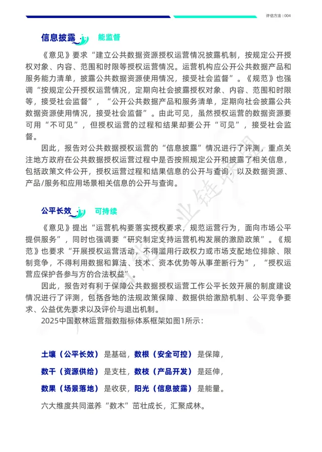 报告以"运数有道,润物无声"为核心理念,将公共数据比作滋养千行百业的春雨,通过构建六维评估体系,全面检视各地在数据供给、产品开发、场景落地、安全可控、信息披露和公平长效等方面的实践成效。