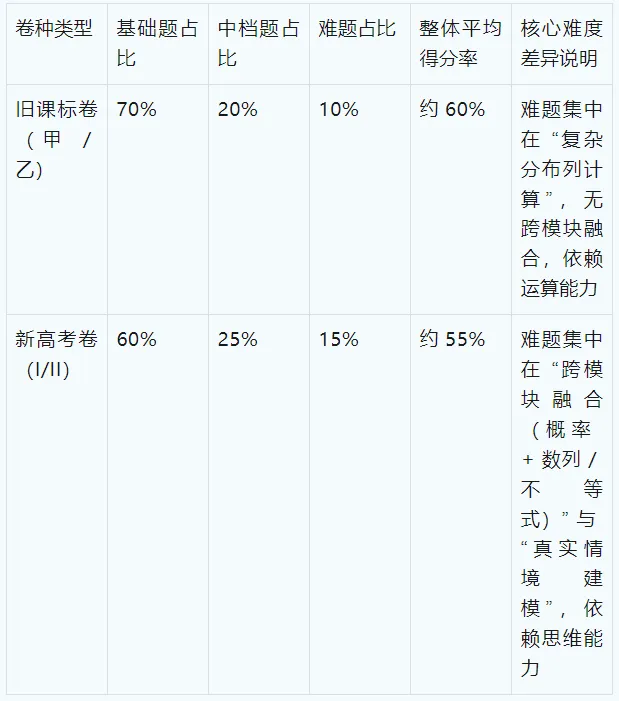 全国卷概率统计的难度结构符合高考 “7:2:1” 的通用比例,但不同卷种的难度分布存在显著差异: