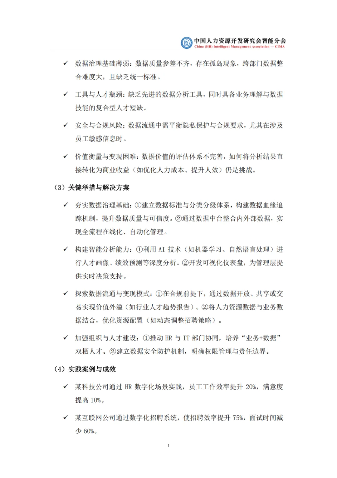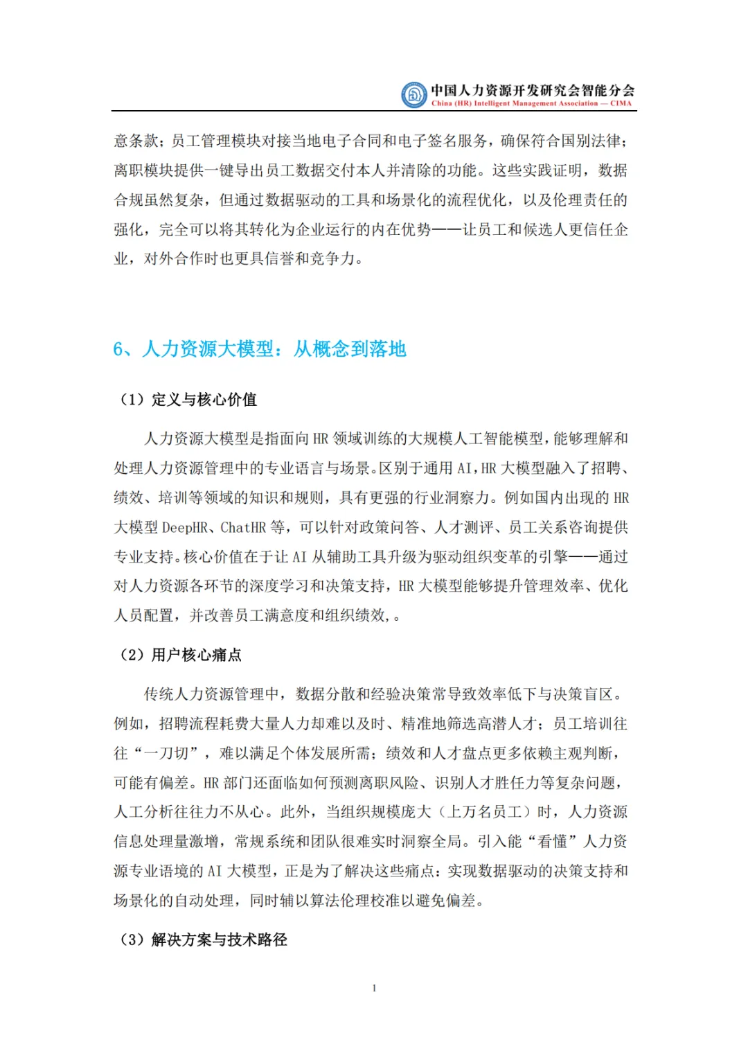 数智化时代的浪潮正以前所未有的速度重塑着全球经济格局,人力资源管理作为企业核心要素配置的关键环节,正经历着从传统管理向智能化转型的深刻变革。继《中国人力资源数智化发展白皮书》2021 年版、2023 年版发布以来,生成式人工智能、多模态大模型、智能体技术等前沿科技的突破性进展,为人力资源数智化发展注入了全新动能,开启了从“信息化管理”到“数字化管理”并最终走向“智能化生态”跃迁的新篇章。