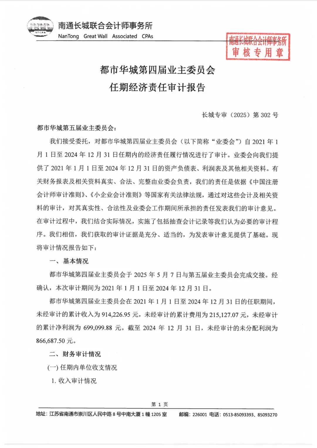 关于都市华城第四届业主委员会任期经济责任审计报告更正通知