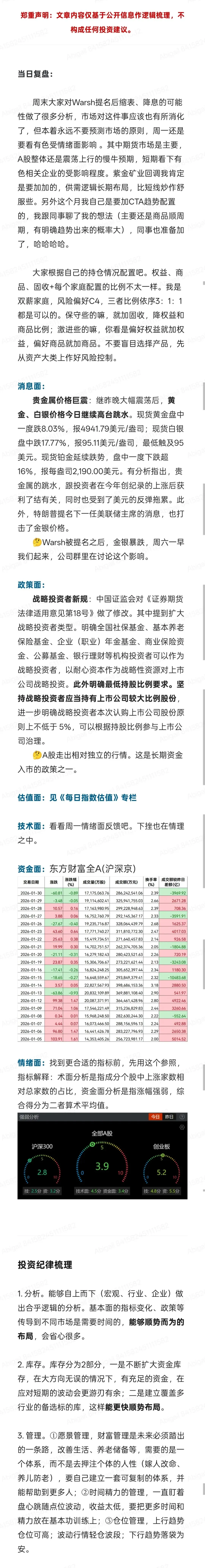 投资感悟№78:下周看看市场情绪对Warsh提名的真实反馈~2026.2.1