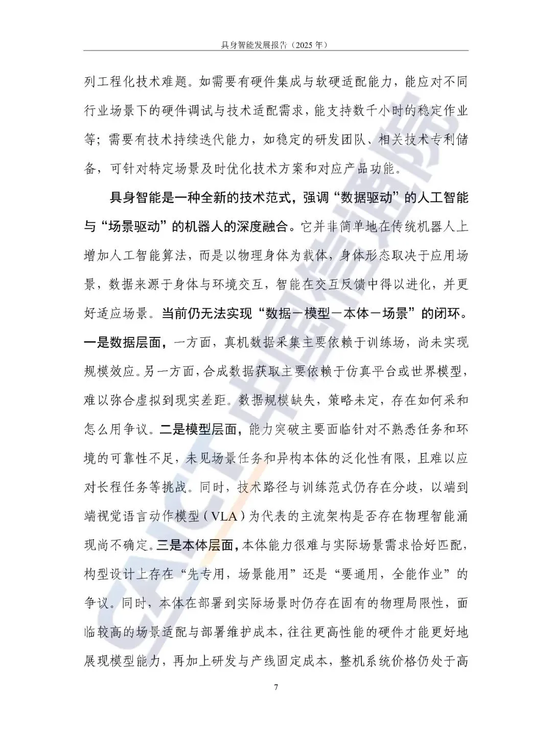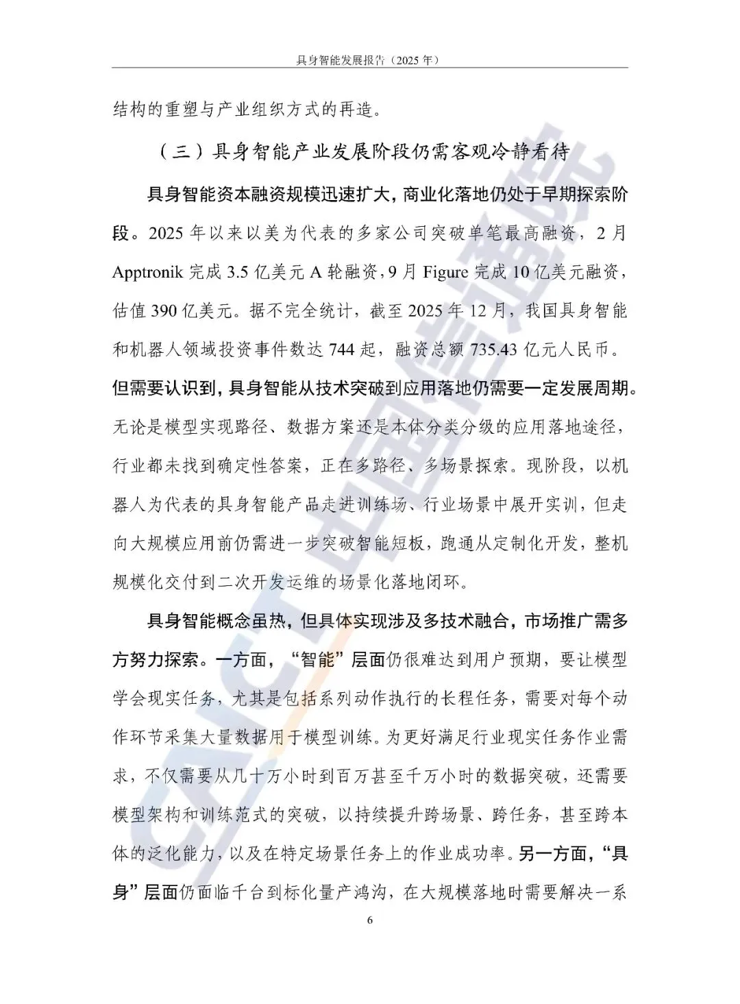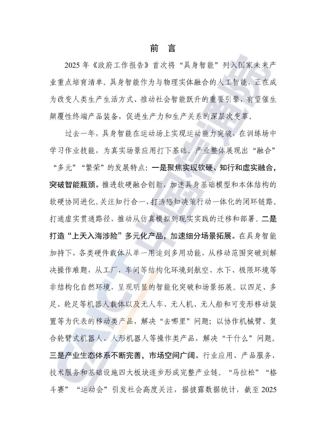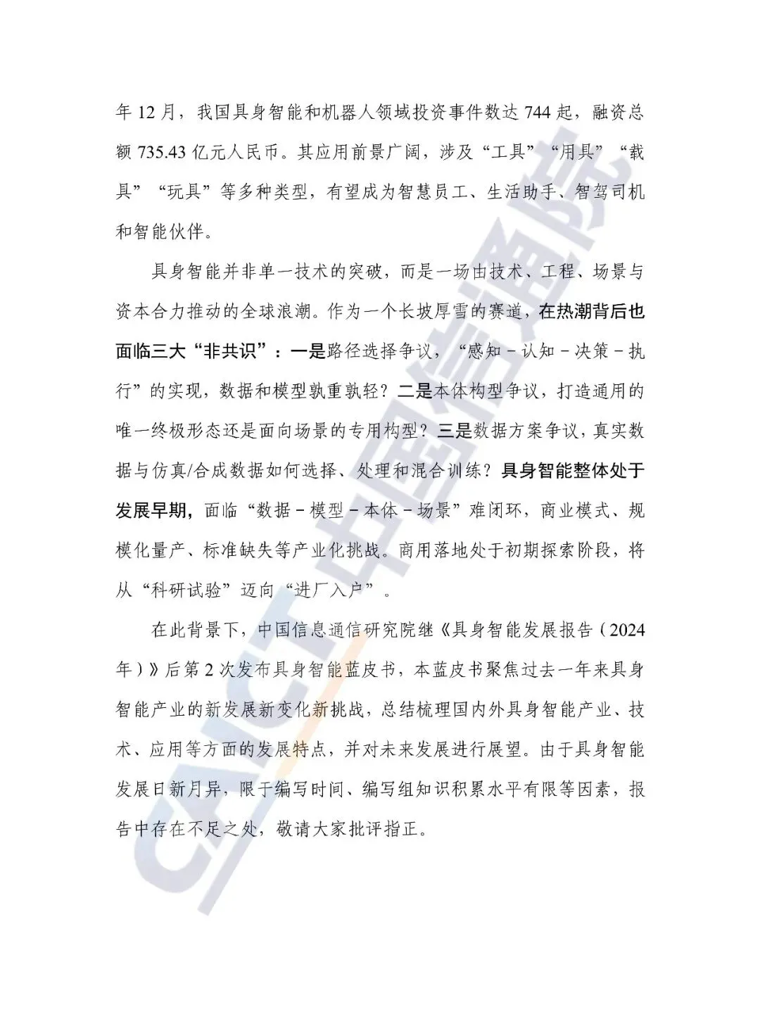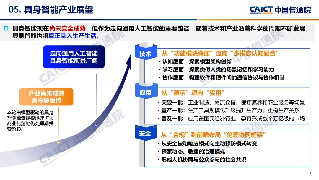 中国信通院继《具身智能发展报告(2024年)》后第2次发布具身智能蓝皮书,报告聚焦过去一年来具身智能产业的新发展新变化新挑战,总结梳理国内外具身智能产业、技术、应用等方面的发展特点,聚焦“数据-模型-本体”三个关键环节,研判分析技术发展路径及问题,围绕机器人、智能运载装备和新型智能产品三大类产品,探讨具身智能产品发展情况及应用局限性,最终从技术架构重构、应用场景深化和安全伦理构建三方面对未来发展进行展望。