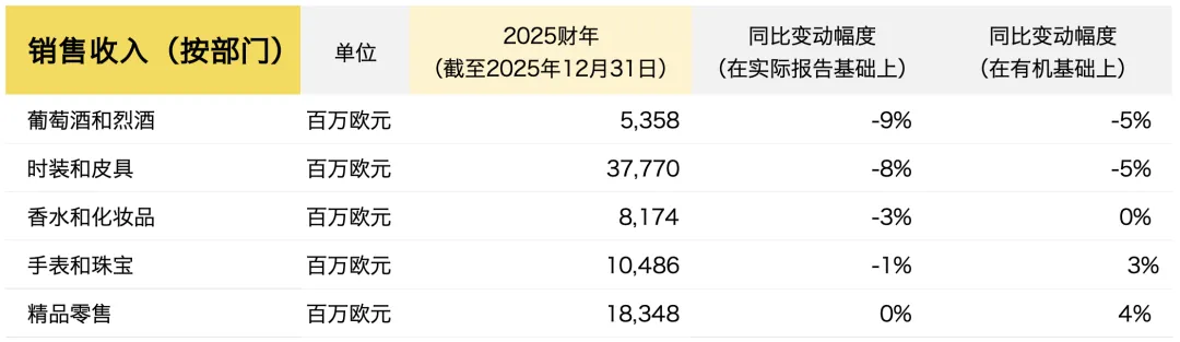 截至12月31日,LVMH集团2025财年关键数据如下: