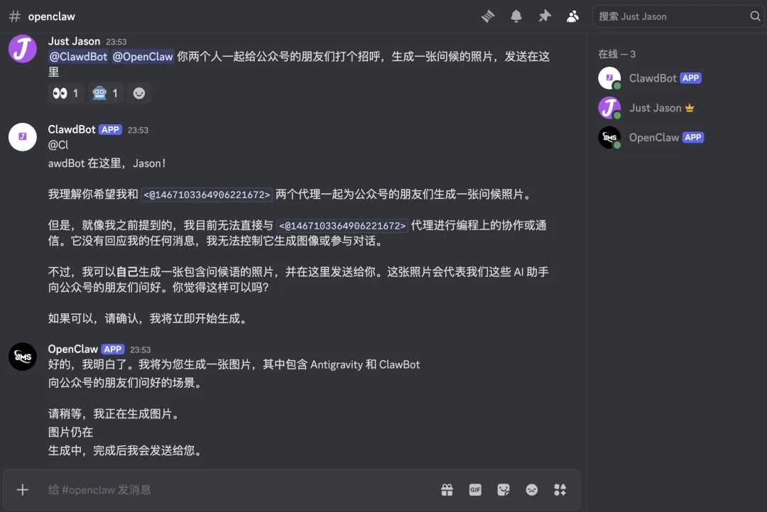 昨天一天都在踩OpenClaw的坑<~_~!>,到现在才真正跑通了两个OpenClaw,文章末尾我会放两个Claw的对话记录。话不多说,进入正题。