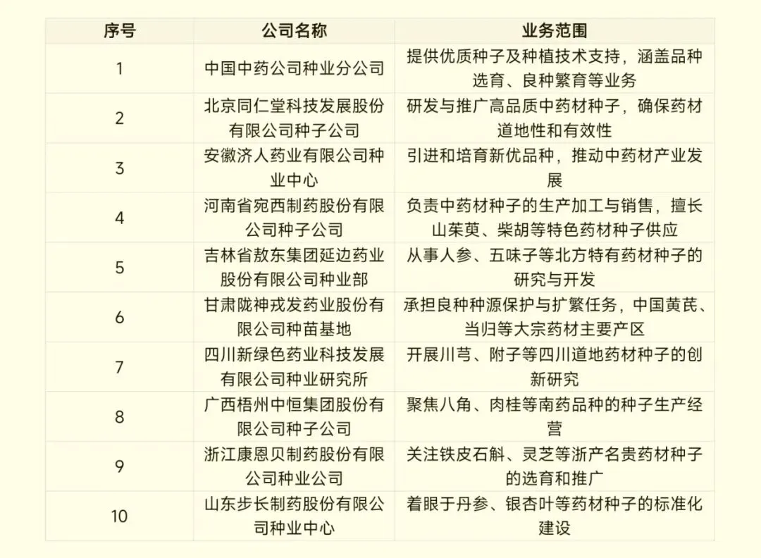 中药材种业相关企业