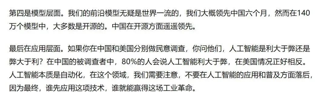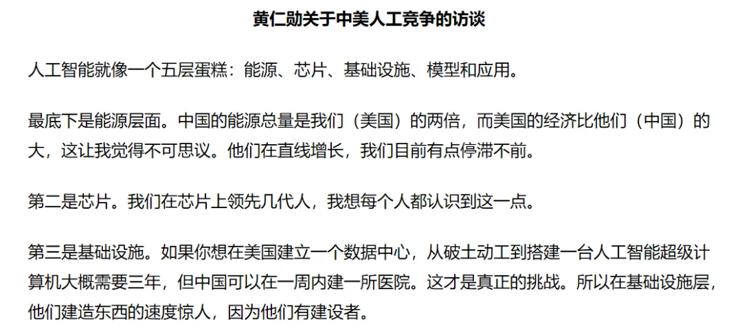 如果真有那一天,中国就成了AI时代的领先者——至少,当下不宜完全排除掉这个“略显乐观”的可能(也不排除是黄仁勋索要更多资源而提出的“威胁论”)