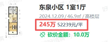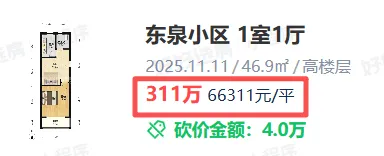 徐汇植物园板块,东泉小区,46.9平的1房,24年年底成交总价245万,25年年底成交总价311万