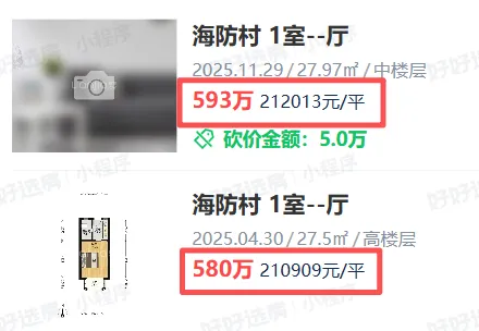 学区房里的典型:海防村,27平的1房,年底的价格较年中已经有所回升